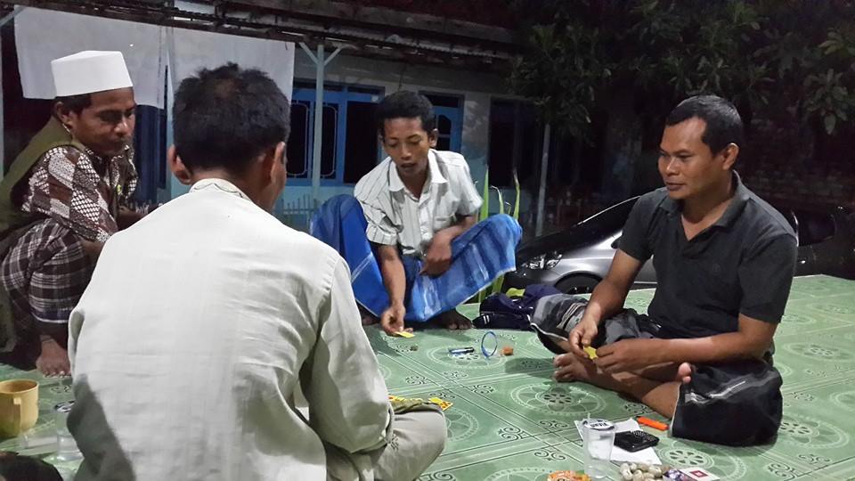 Dalam foto tersebut, Abrari Alsael sedang memakai sarung tengah asyik bermain kartu domeno dengan beberapa orang lainnya yang juga mengenakan sarung dan sebagian lain lengkap dengan kopiah dikepala.